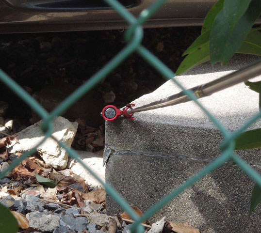 伸縮ピンポールと組み合わせることにより、手では届かない「フェンス越えの建物角」や「建物の軒下」などを簡単に、しかも正確に測距する事が可能です。
