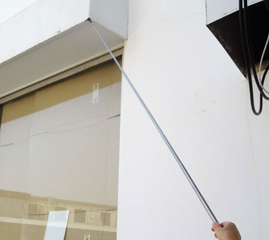 伸縮ピンポールと組み合わせることにより、手では届かない「フェンス越えの建物角」や「建物の軒下」などを簡単に、しかも正確に測距する事が可能です。